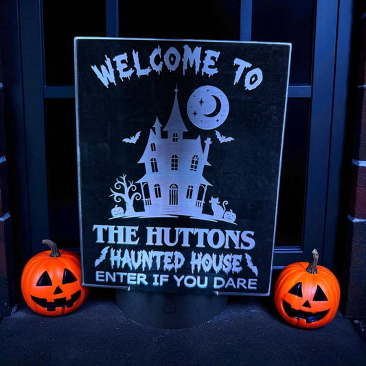 Personalised Halloween Night Light – Haunted House Family Name