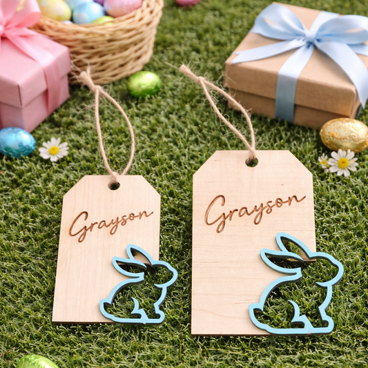 Personalised Easter Gift Tags | Wooden Name Tags | Choose Icon & Colour | 2 Sizes